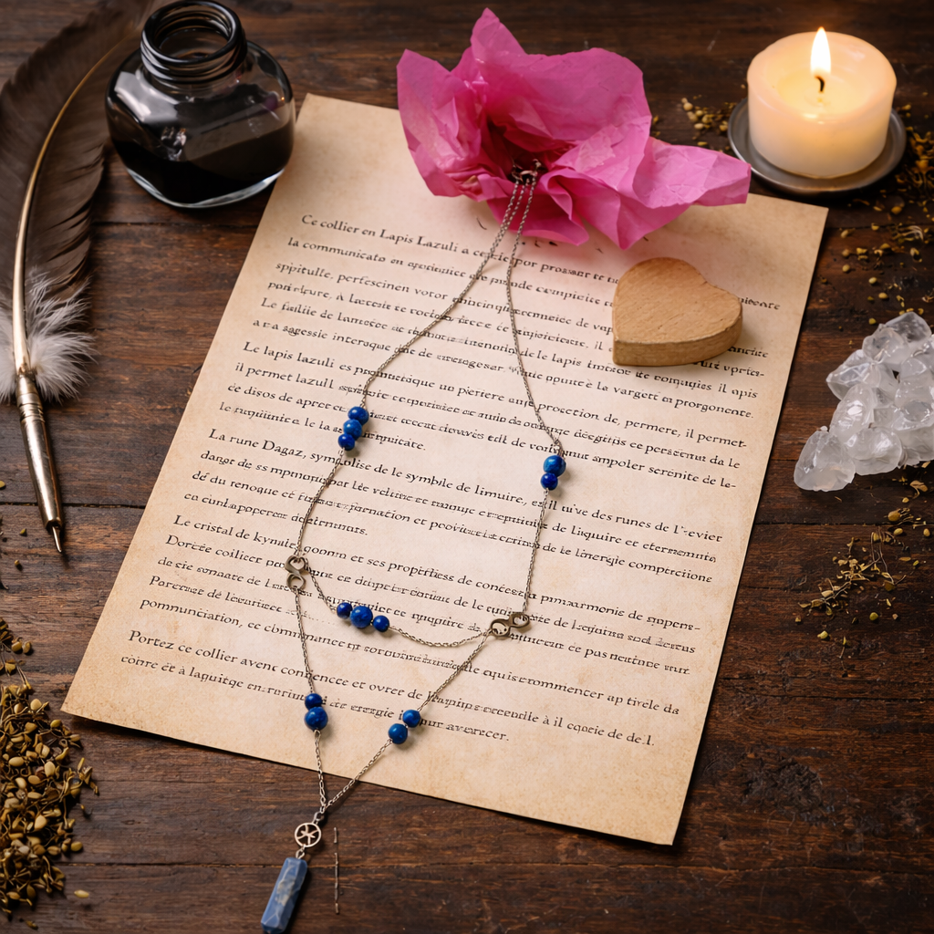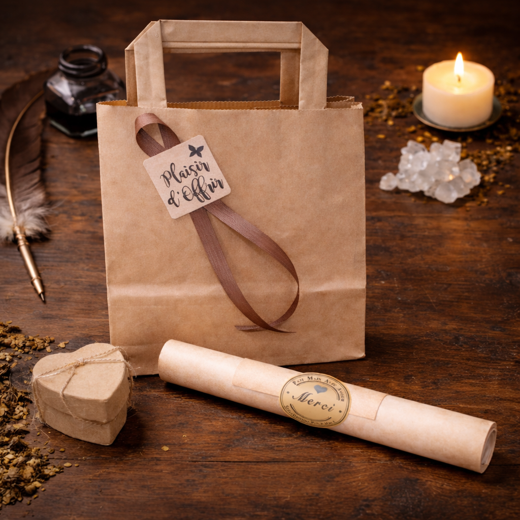 Chaque bijou est accompagné d’un parchemin explicatif, sur lequel vous retrouverez la signification des pierres, l’énergie des symboles utilisés, ainsi que des conseils d’entretien pour préserver toute la beauté et les vibrations de votre création dans le temps.